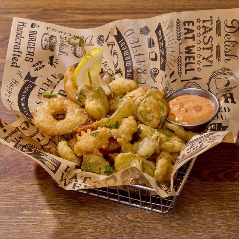 Crispy hand battered dill pickle slices served with Tipsy sauce or Ranch dressing