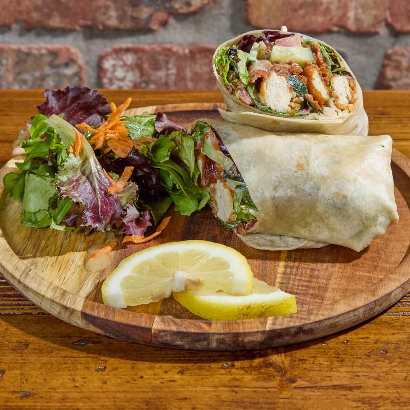 Bacon, lettuce, tomato, and a fried egg on grilled sourdough served with fresh fruit & fries or tots.