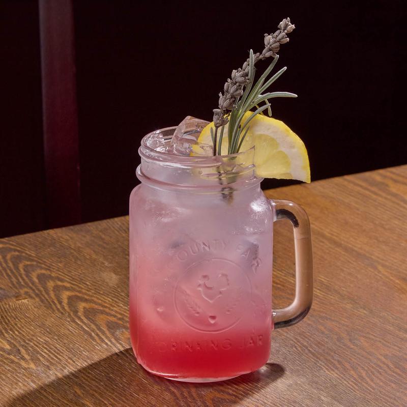 Tito vodka, elderflower liqueur, blackberrry puree, fresh lemon juice, simple syrup, fresh mint, club soda, and lemonade.